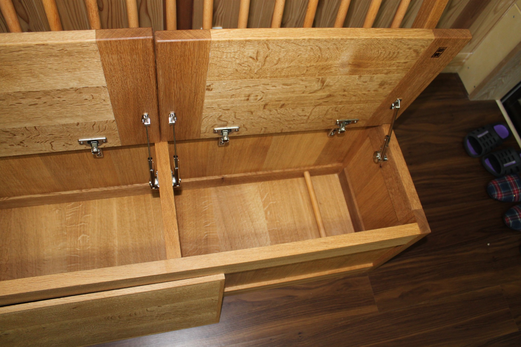 オーク【ナラ】材で収納ベンチを製作させて頂きました